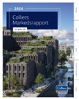 Note: Første linje viser transaktionsvolumen i 2023. Anden linje viser den relative ændring i transaktionsvolumen fra 2022 til 2023. Kilde: Colliers